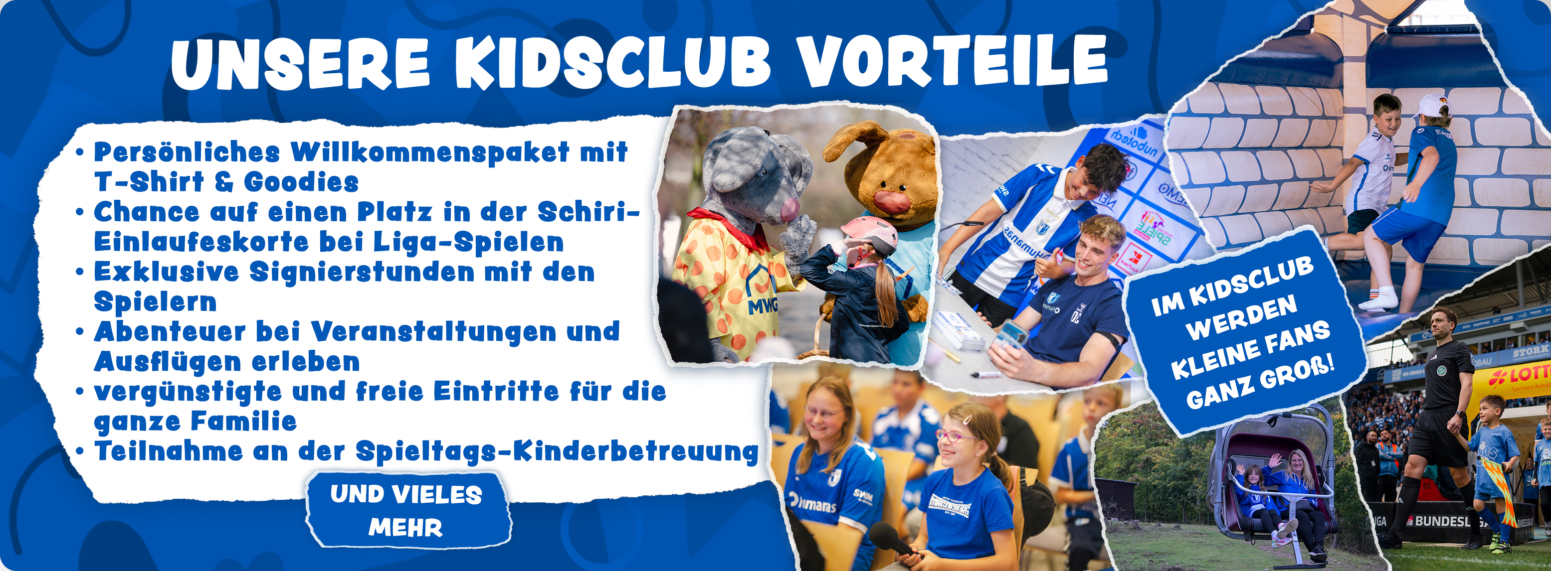 Du zählst zu unseren jüngsten Blau-Weißen Clubfans? Komm in den KidsClub und sei immer mit dabei!