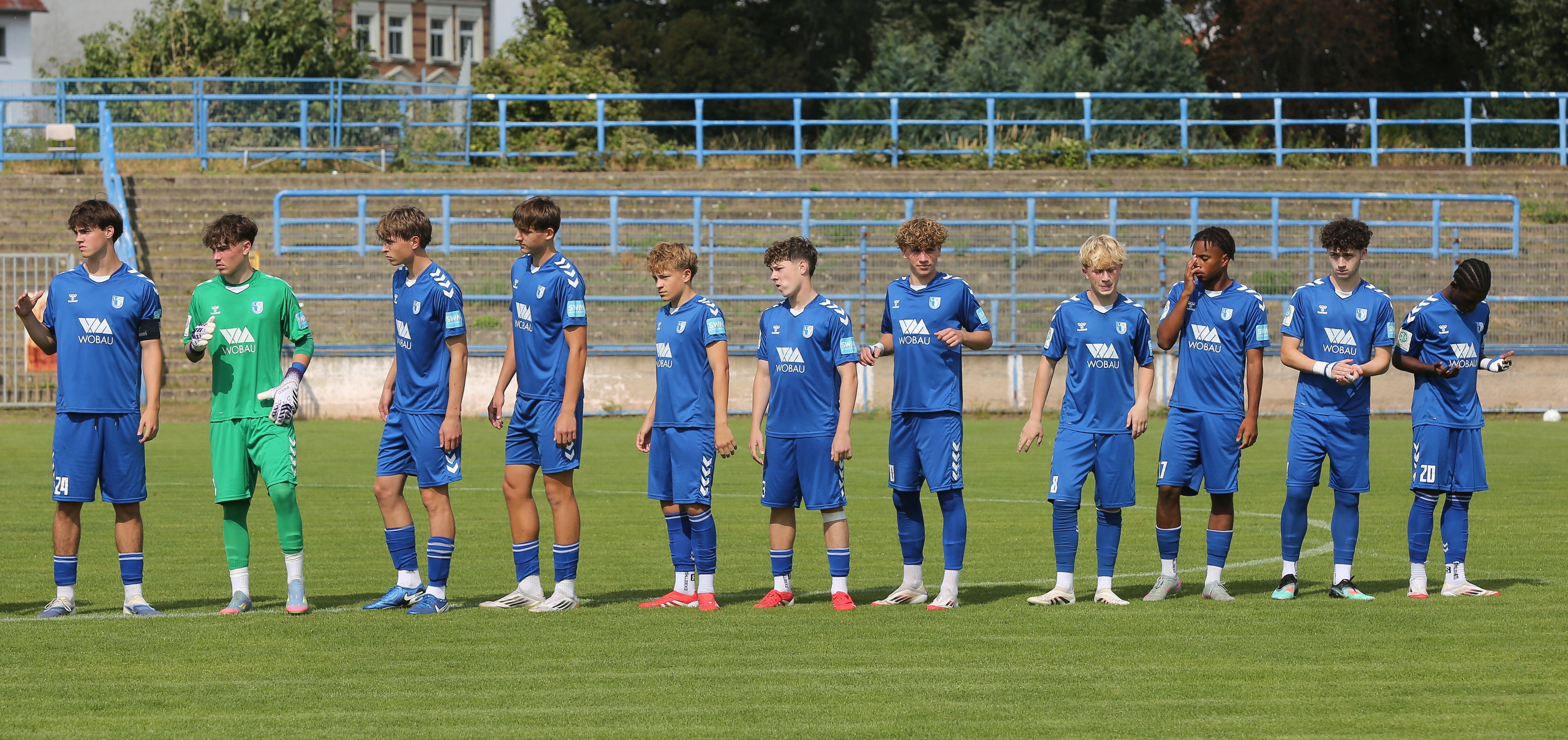 1. FC Magdeburg: Pagel, Machon (77. Hakelberg), Lemke, Rufener (65. Jacob), Heckeroth, Gussmann (65. Kromat), Baumann, Hofmann (46. Debitsch), Forestier (65. Hübener), Balde, Ogieriakhi