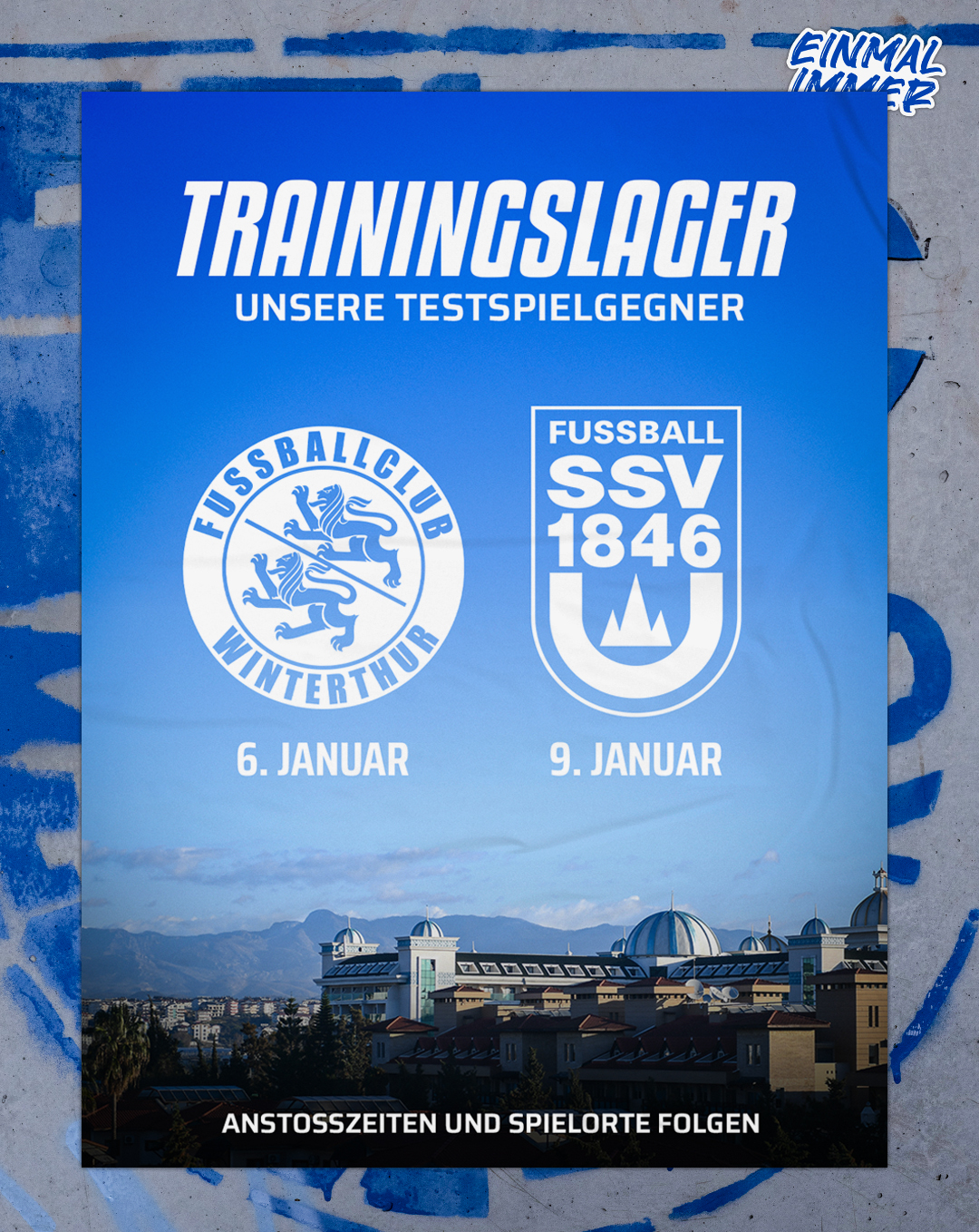 Das zweite Testspiel findet am Freitag, 9. Januar, statt. Unser Gegner wird der SSV Ulm 1846 Fußball sein, der aktuelle Tabellen-18. der 3. Liga.