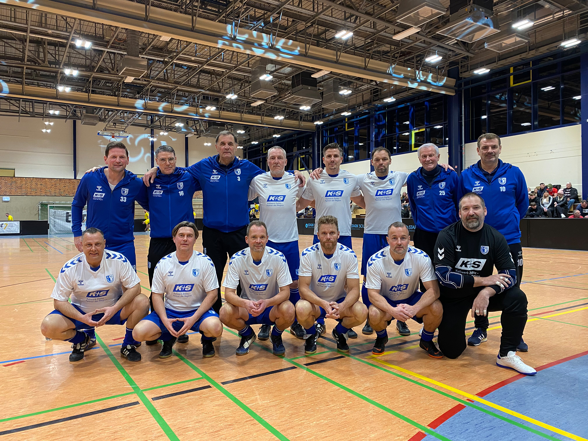 Am Freitagabend stand man beim Oldie Masters in der Stadtfeldhalle in Wernigerode auf dem Parkett. Gleich im ersten Spiel traf man auf die Mannschaft von Carl Zeiss Jena. Und der Auftakt sah vielversprechend aus. Man führte durch Tore von Siemke und Bengs schnell mit 2:0. Ausgerechnet der Ex-Magdeburger Christian Reimann brachte mit seinem Anschlusstreffer den Spielfluss der Blau-Weißen gehörig durcheinander. Ein Doppelschlag der Thüringer führte zum Rückstand und als man mit allen Mitteln versuchte den Ausgleich zu erzielen, brachte ein Konter den 2:4-Endstand.