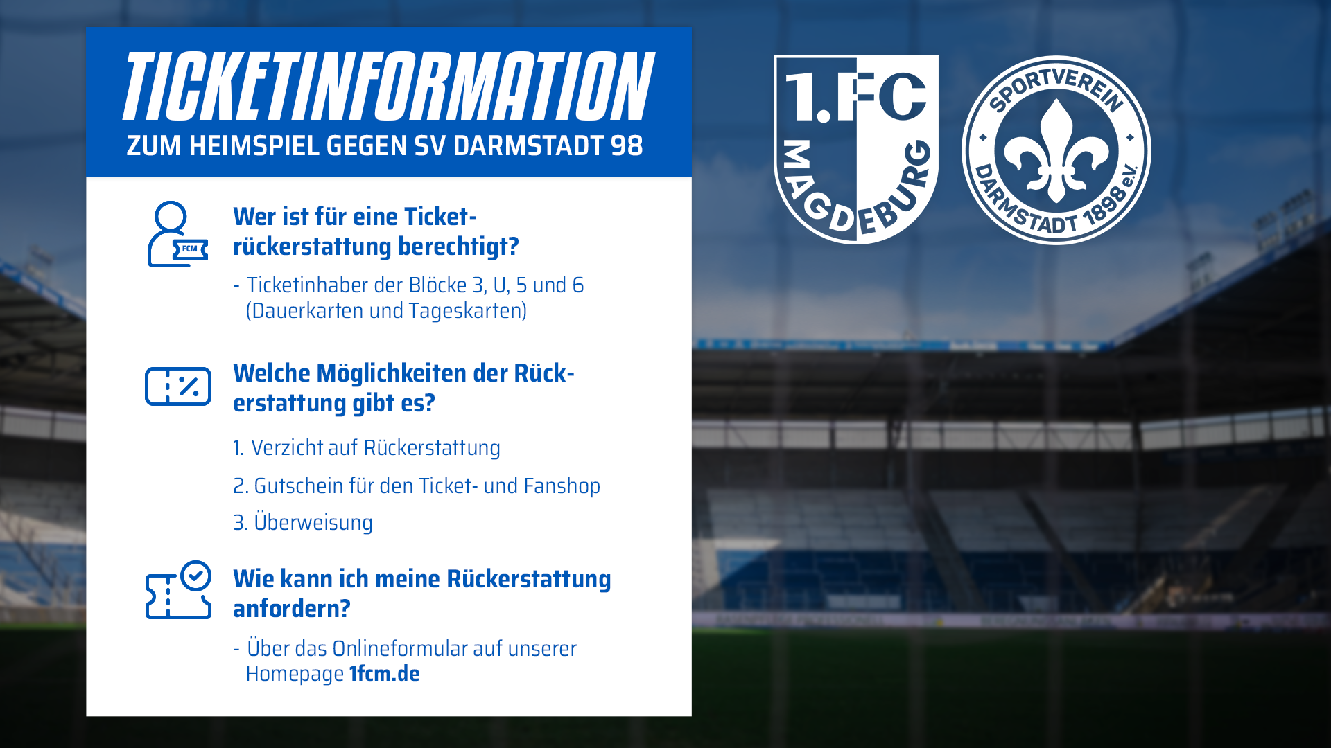 Für betroffene Ticketinhaber bietet der 1. FC Magdeburg eine Rückerstattung an.