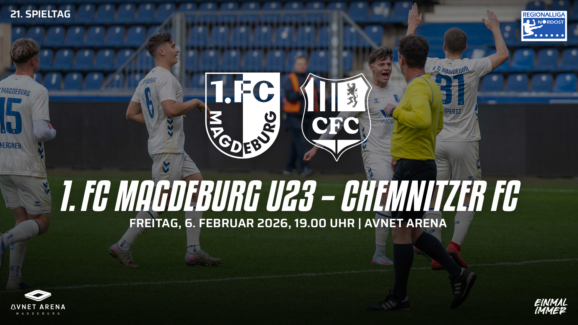 Am 06.02.2026 um 19:00 Uhr findet das Heimspiel unserer U23 in der Regionalligasaison 2025/26 gegen den Chemnitzer FC in unserer Avnet Arena statt.