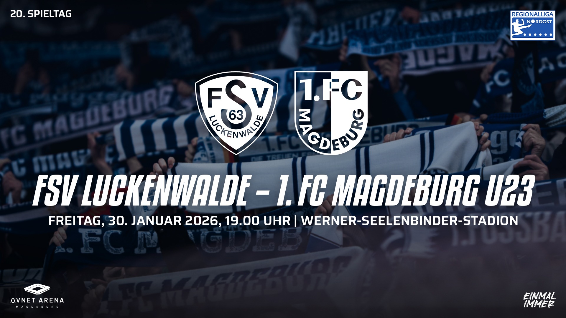 Am 04.03.2026 um 19:00 Uhr findet unser Nachholspiel beim FSV Luckenwalde statt. Alle bereits erworbenen Tickets behalten ihre Gültigkeit.