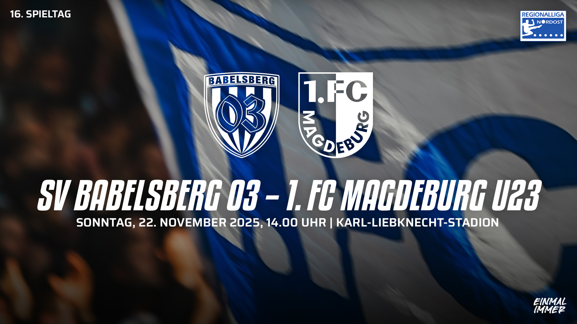 Am 22.11.2025 um 14:00 Uhr findet das Auswärtsspiel unserer U23 in der Regionalligasaison 2025/26 beim SV Babelsberg 03 im Karl-Liebknecht-Stadion statt.