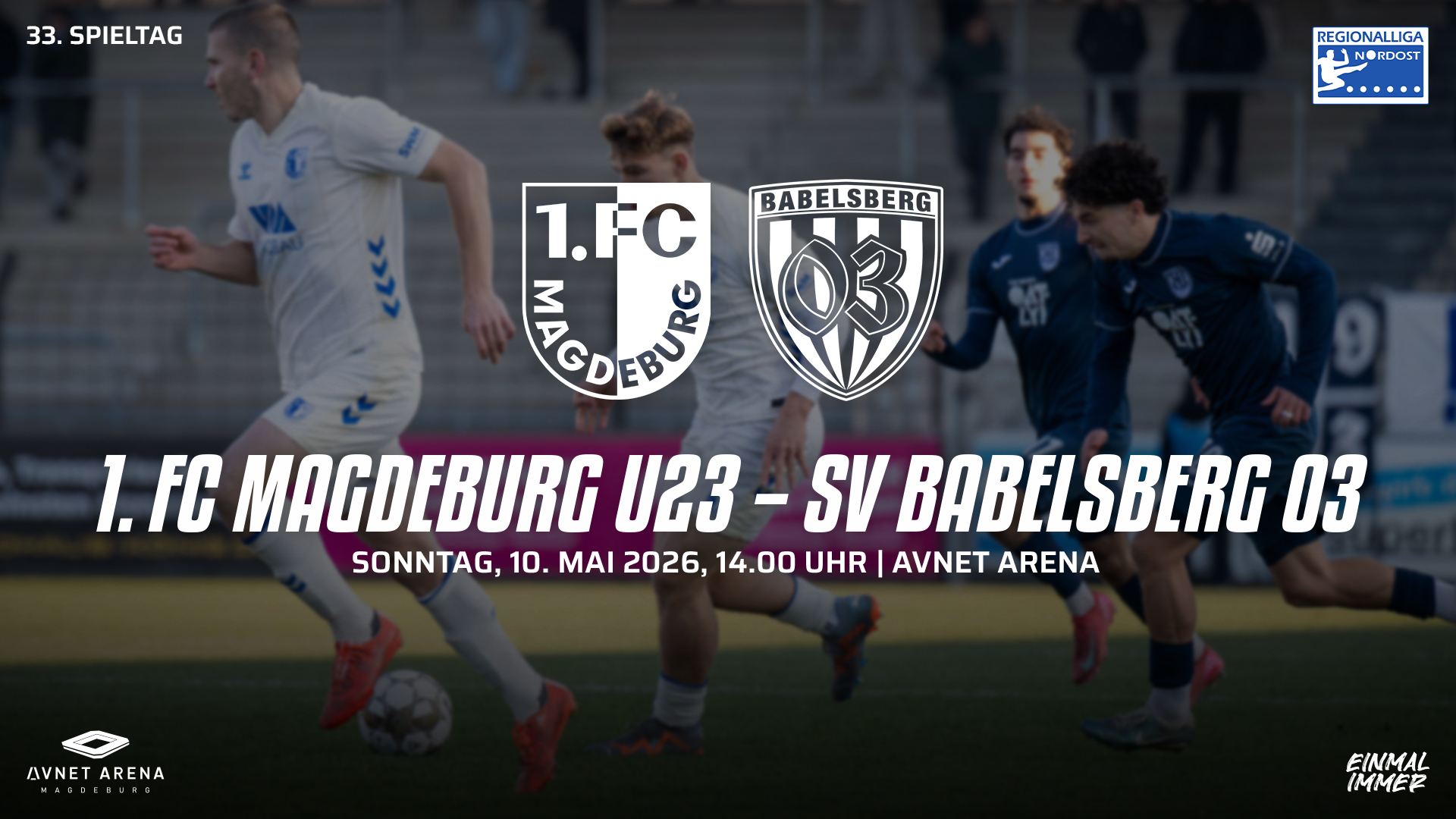 Am 10.05.2026 um 14:00 Uhr findet das Heimspiel unserer U23 in der Regionalligasaison 2025/26 gegen den SV Babelsberg 03 in unserer Avnet Arena statt.